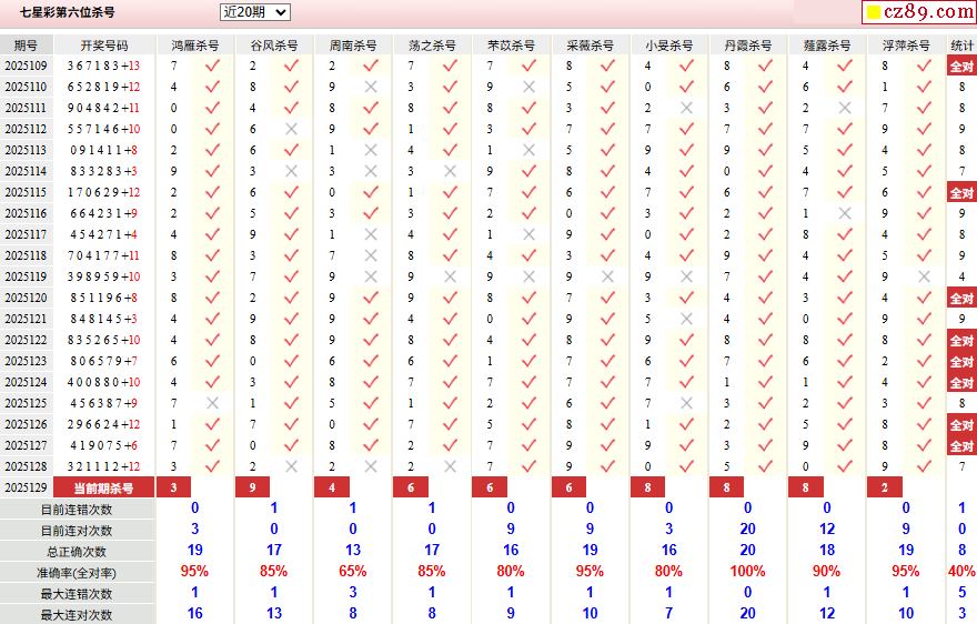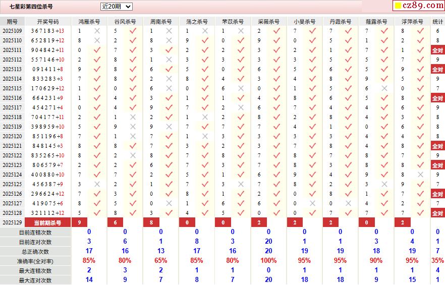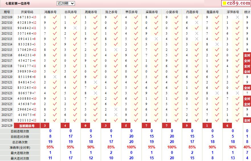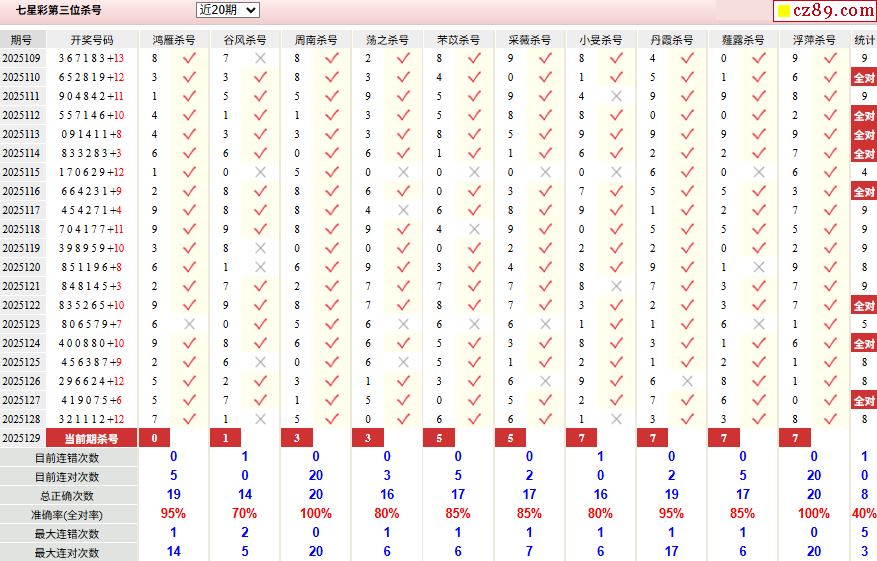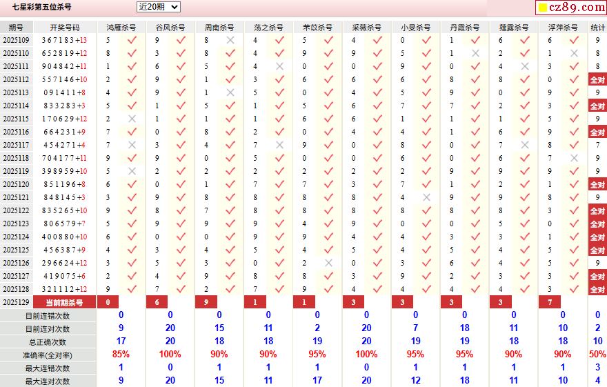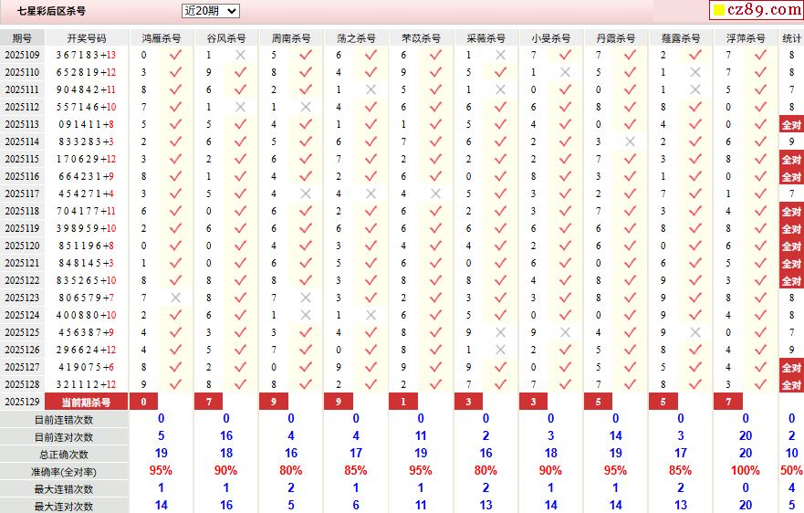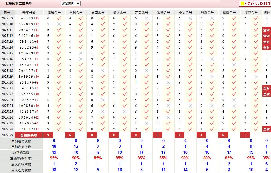 129期彩票专家体彩七星彩定位杀号图表